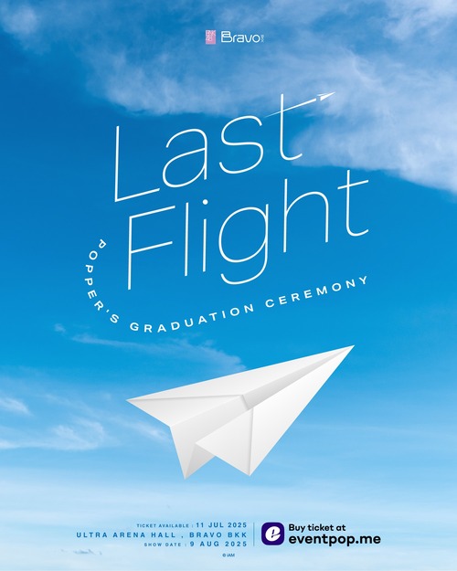 “Last Flight” – Popper’s Graduation Ceremony จะเปิดจำหน่ายบัตรวันที่ 11 กรกฎาคมนี้ ตั้งแต่เวลา 12.00 น. เป็นต้นไป ผ่านช่องทาง eventpop.me  ราคาเริ่มต้น 800 / 1,500 / 1,800 / 1,900 / 2,200 / 6,500 บาท และสามารถติดตามรายละเอียดเพิ่มเติมได้ที่ : https://www.facebook.com/bnk48official