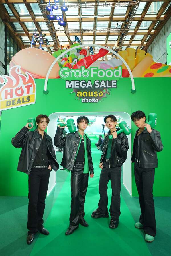 แท็กทีมเสิร์ฟความร้อนแรงไม่พักสำหรับ เจมีไนน์-นรวิชญ์, โฟร์ท-ณัฐวรรธน์, สกาย-วงศ์รวี และ นานิ-หิรัญกฤษฎิ์ 4 พรีเซ็นเตอร์หนุ่มสุดฮอต Friends of Grab ที่ล่าสุดได้นำทีมบุก One Bangkok เปิดฉากย้ำความเป็นตัวจริงเรื่องความคุ้มค่า ในงานเปิดตัวแคมเปญใหญ่แห่งปี “GrabFood Mega Sale ลดแรง ตัวจริง” งานนี้สี่หนุ่มได้ชวนศิลปิน T-POP ตัวจี๊ดอย่าง BUS และ PiXXiE มาร่วมปล่อยเอเนอร์จี้สุดมันส์ พร้อมยกขบวนประกาศทุบดีลส่วนลดชุดใหญ่ เคาะทุกมื้อเริ่มต้นเพียง 30 บาท มากกว่า 250,000 ดีล และลดเพิ่มอีกสูงสุด 60% ไม่มีขั้นต่ำเพียงใส่โค้ด ‘MEGA’ พร้อมไฮไลต์ส่งฟรี 0 บาททุกออเดอร์ เต็มอิ่มทั้งความคุ้มและความฟินแบบใกล้ชิดตลอดทั้งงาน