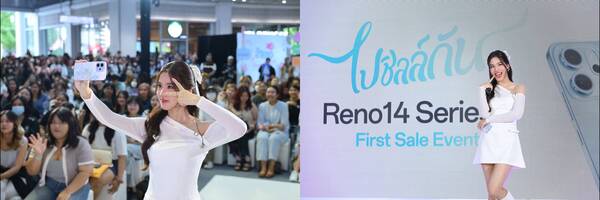OPPO Reno14 Series 5G ตอกย้ำความแรง อัปเกรดประสบการณ์ The AI Portrait Expert ถ่ายพอร์ตเทรตสวยด้วยการอัปเกรดไปอีกขั้น ตอกย้ำประสิทธิภาพอันทรงพลัง ด้วยการจัดงาน “ไปชิลล์กัน OPPO Reno14 Series 5G | First Sales Event” ชวนชิลล์ไปกับเหล่าดาราศิลปินคนโปรดมากความสามารถ ‘เพิร์ธ-แซนต้า’, ‘นัท ศุภณัฐ’ และ ‘บอนนี่’ มาร่วมสร้างประสบการณ์การถ่ายพอร์ตเทรตสุดชิคด้วย AI แฟลช และ พอร์ตเทรตซูมได้ 3.5 เท่า พร้อมทั้งร่วมสนุกไปกับการ BATTLE ในเกม RoV พร้อมจอยกับมินิคอนเสิร์ตแบบสุดเอ็กซ์คลูซีฟจากศิลปินคนโปรด ที่ ชั้น G Samyan Mitrtown วันที่ 12 กรกฎาคม 2568