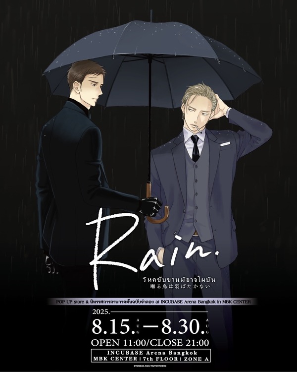 INCUBASE Arena Bangkok ร่วมกับ INCUTix เตรียมเปิดประสบการณ์สุดเอ็กซ์คลูซีฟให้แฟนมังงะ และสายวายได้อินไปกับโลกของ “Twittering Birds Never Fly” กับงาน Popup Store และนิทรรศการภาพวาดต้นฉบับจากมังงะเวอร์ชันญี่ปุ่นที่ถูกต้องตามลิขสิทธิ์ ตั้งแต่วันที่ 15-30 สิงหาคม 2568 เวลา 11.00 – 21.00 น. ณ INCUBASE Arena Bangkok ชั้น 7 โซน A ศูนย์การค้า MBK เซ็นเตอร์, SF TOWN
