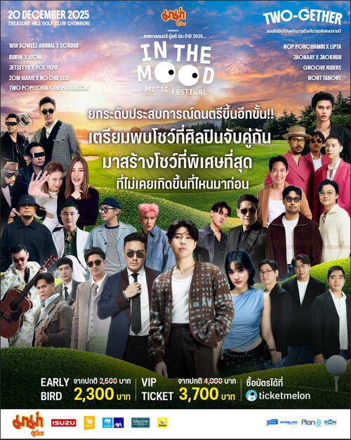 ช่วงเวลา2สัปดาห์สุดท้ายก่อนขึ้นปีใหม่ เป็นช่วงเวลาสุดชิลของปีที่คุณจะได้ปล่อยใจให้ไหลไปกับเสียงเพลงเพราะๆ กับ “มาม่า presents In the Mood Music Festival 2025” คอนเซ็ปต์ “TWO-GETHER” ท่ามกลางวิวสนามกอล์ฟโอบล้อมด้วยทิวเขา อากาศเย็นๆ ต่ำกว่า 20 องศา พร้อมบรรยากาศสุดพรีเมียมที่ทั้งสบายและสวยแบบ Natural Luxury ปูเสื่อ ตั้งวงกับก๊วนบนพื้นที่สีเขียว เหมือนยกห้องนั่งเล่นออกไปอยู่กลางธรรมชาติ พร้อมอาหารร้านดังและบูธเครื่องดื่มจัดเต็ม ให้คุณกิน-ดื่ม-ฟังดนตรีแบบฟรีสไตล์ ชวนเพื่อน ชวนแฟน หรือมากับครอบครัว แชร์โมเมนต์ดีๆ กับโชว์จับคู่สุดพิเศษจากศิลปินชื่อดัง ที่คัดมาให้คุณฟังกันสดๆ แบบหาดูที่ไหนไม่ได้ ใกล้ๆแค่ Treasure Hill Golf Club จังหวัดชลบุรี ขับรถไม่นาน ก็ได้หลบเมือง เป็น Weekend Getaway ทั้งชิลและฟินกันได้แบบไม่เหนื่อย วันเสาร์ที่ 20 ธันวาคม 2568 เตรียมตัวให้พร้อม สำหรับคืนสุดพิเศษ ที่ทั้งเต็มไปด้วยความสุข ประสบการณ์การฟังเพลงแบบใหม่ๆ ที่คุณจะอยากเก็บไว้เป็นอีกหนึ่งโมเม้นท์ดีๆของปี 2025 แบบพิเศษสุด