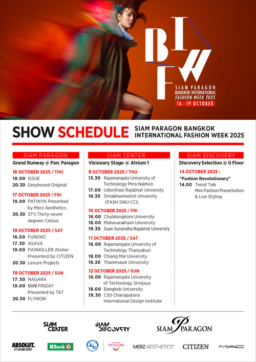 “Siam Paragon Bangkok International Fashion Week 2025” (BIFW2025) เวทีแฟชั่นวีคที่ยิ่งใหญ่ที่สุดในประเทศไทยและเป็นงานแฟชั่นสำคัญของเอเชีย ซึ่งจัดขึ้นต่อเนื่องเป็นปีที่ 18 โดย สยามพารากอน ร่วมกับ