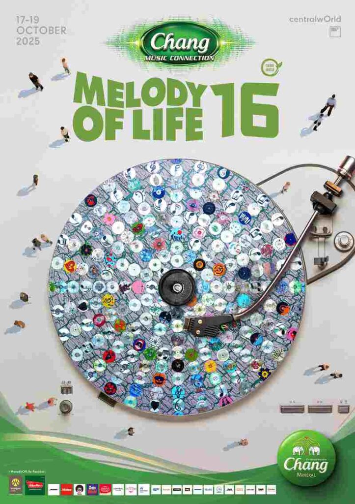 เตรียมพบกับเทศกาลดนตรีขนาดยักษ์ที่ให้ความสนุกและรักโลกที่สุด อย่าง “Chang Music Connection Presents Melody Of Life 16” (ช้าง มิวสิค คอนเนคชั่น พรีเซนต์ เมโลดี้ ออฟ ไลฟ์ ครั้งที่ 16) ในวันที่ 17-19 ตุลาคม 2568 ณ ศูนย์การค้าเซ็นทรัลเวิลด์ ซึ่งจัดมาอย่างต่อเนื่องและยิ่งใหญ่ขึ้นทุกปีโดย ค่ายเพลง สไปร์ซซี่ ดิสก์ (SPICYDISC) ร่วมกับศูนย์การค้า เซ็นทรัลเวิลด์ ที่พร้อมจะให้ทุกคนได้สนุกไปกับมหกรรมฟรีคอนเสิร์ตจากศิลปินกว่าร้อยชีวิต และคงคอนเซปต์ให้ทุกคนช่วยกันรักษ์โลก ด้วยการจัดกิจกรรมชดเชยคาร์บอนที่เกิดจากการจัดงานให้เป็นศูนย์ โดยการจัดหาคาร์บอนเครดิตจากโครงการลดก๊าซเรือนกระจกมาชดเชยก๊าซเรือนกระจกที่ปล่อยจากกิจกรรมในการจัดอีเว้นท์หรือที่เรียกว่าคาร์บอนนิวทรัล (Carbon Neutral) และใส่ใจสิ่งแวดล้อมด้วยการใช้วัสดุรีไซเคิลในการจัดงาน ซึ่งปีนี้ผู้ที่ชนะจากการประกวดออกแบบประติมากรรมศิลปะน้องกล้วยกรุงศรีได้สร้างสรรค์ผลงานศิลปะจากกิจกรรม “From Waste to WOW Sustainable Sculpture Contest 2025 By Krungsri” ได้นำมาจัดแสดงให้ได้ชมตามบริเวณจุดต่าง ๆ ภายในงาน และการจัดให้มีการแยกขยะที่ถูกต้อง แถมยังให้ทุกคนได้ร่วมรักโลกไปด้วยกันกับกิจกรรมสกรีนเสื้อโลโก้ศิลปินในวันงานอีกด้วย โดยรายได้จะนำไปปลูกป่าร่วมกับมูลนิธิเพื่อสิ่งแวดล้อม และให้ได้สนุกกันถึง 4 เวทีอีกเช่นเคย ได้แก่ เวที Indoor (อินดอร์), Outdoor (เอ้าท์ดอร์), IDOL (ไอดอล), Indy (อินดี้) รวมศิลปินกว่า 100 ศิลปิน!