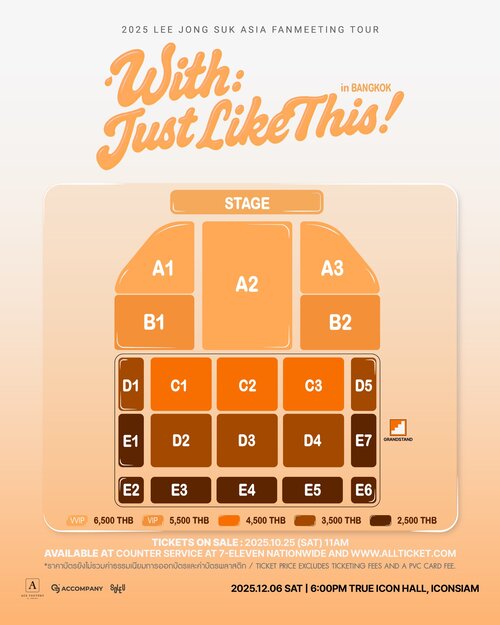SOLE U ENTERTAIN (โซลยูว์ เอ็นเตอร์เทน) ผู้จัดมากประสบการณ์ เตรียมสร้างเซอร์ไพรส์ครั้งใหม่ คว้า “อีจงซอก” นักแสดงหนุ่มซูเปอร์สตาร์เกาหลีใต้ บินลัดฟ้าคัมแบ็คประเทศไทยจัดงานแฟนมีตติ้งสุดเอ็กซ์คลูซีฟที่แฟน ๆ รอคอย “2025 LEE JONG SUK ASIA FANMEETING TOUR [With : Just Like This] in BANGKOK” อีจงซอกพร้อมแล้วที่จะมอบโมเมนต์สุดฟิน สุดอิน จัดเต็มทุกวินาที ในวันเสาร์ที่ 6 ธันวาคม 2568 เวลา 18.00 น. ณ TRUE ICON HALL, 7th FLOOR, ICONSIAM เหล่าชาวด้อม With ไม่ควรพลาด!