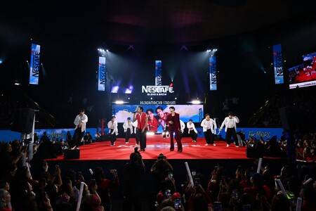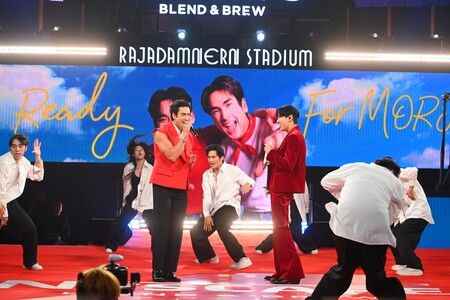 แบรนด์แอมบาสเดอร์ ณเดชน์ และแบมแบม ท่ามกลางแสง สี เสียง และจอ Immersive 360 องศา สุดอลังการ พร้อมจับไมค์โชว์เพลง “ไปอีก (Ready For MORE)” เป็นครั้งแรก เรียกเสียงกรี๊ดจากแฟนๆ ดังกระหึ่มเวที ทั้งคู่ได้ดวลจังหวะในเกม “จังหวะอร่อยลงตัว” เพิ่มกาแฟ เติมนม แบบตัวต่อตัว ก่อนเปลี่ยนโหมดเป็นความฮาในช่วง “กำกับกาแฟ”