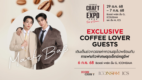 ในงาน “ICONIC CRAFT COFFEE EXPO 2025” พร้อมลุ้นร่วมกิจกรรม “Exclusive Coffee Lover with MaxkyBas” หลังจากเสิร์ฟเคมีสุดฟินให้จิ้นไม่หยุด ครั้งนี้สองหนุ่มสุดฮอต “แม็กกี้-รชต พิเชฐโชติ” และ “บาส-หัสณัฐ...